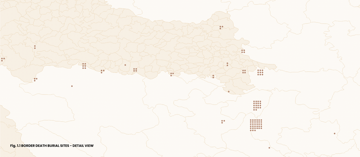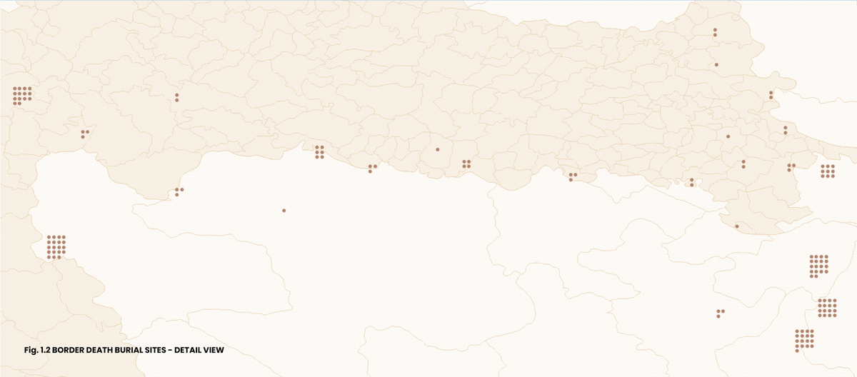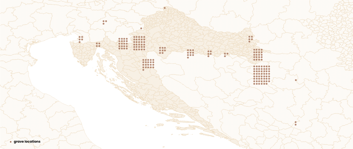 Border death burial sites marked on this map have been identified based on media reports, personal accounts, data requests to different institutions, and field visits to cemeteries. For complementary data about border deaths, see the Map of Border Deaths and 4D database. Information sources for each burial site shown on the map are provided alongside each location in a dataset available here. The dataset includes several graves outside Croatia that fall beyond the geographic scope of this set of visualizations.The locations of individual graves were recorded using a mobile phone GPS, which may result in slight coordinate variations even for exact positions. These GPS coordinates were then integrated into a GIS (Geographic Information System) tool to produce the maps. For the spatial visualizations, QGIS (open-source mapping software) and professional design software were used to create the maps. Geographic data was obtained from multiple sources including OpenStreetMap, The Humanitarian Data Exchange, and DIVA-GIS.